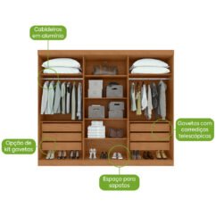 O Guarda Roupa Clara Plus com 3 Portas de Correr, 4 Gavetas e Espelho da Carioca Móveis traz conforto, sofisticação e praticidade. Combinado com 4 prateleiras e 3 cabideiros, deixa o produto com uma divisão funcional capaz de proporcionar ao cliente acomodar todas as suas roupas de maneira mais organizada e com maior visibilidade. Com…
