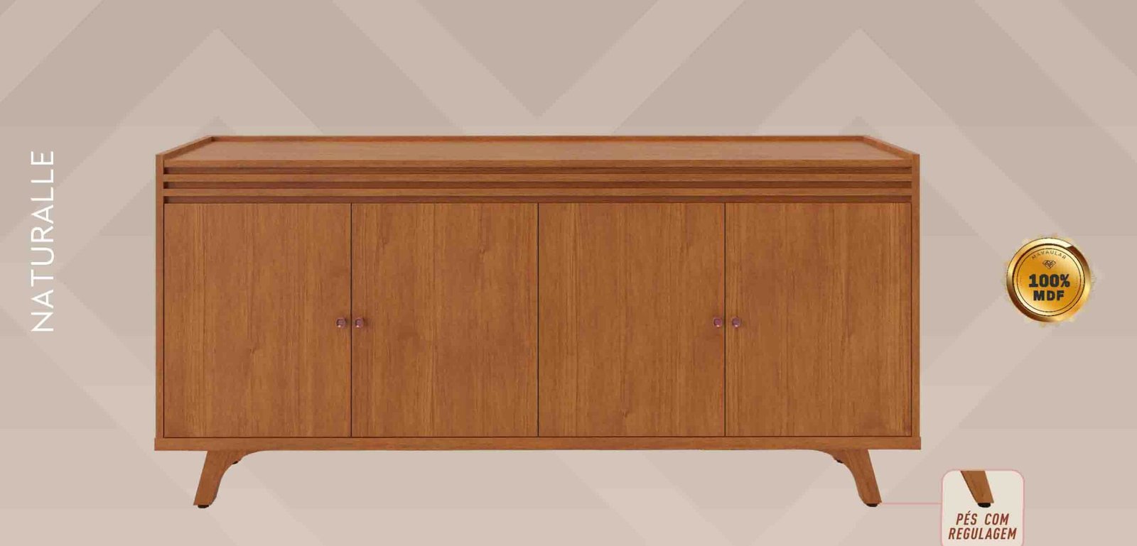 O Buffet Sevilha tem muito o que agregar em sua sala de estar. Está precisando de um móvel para armazenar suas coisas de fácil acesso e ainda decorar o ambiente? Esse Buffet é ideal para você! Com 4 portas, mais o ripado na parte de cima, tem espaço de sobra para armazenar seus pertences.