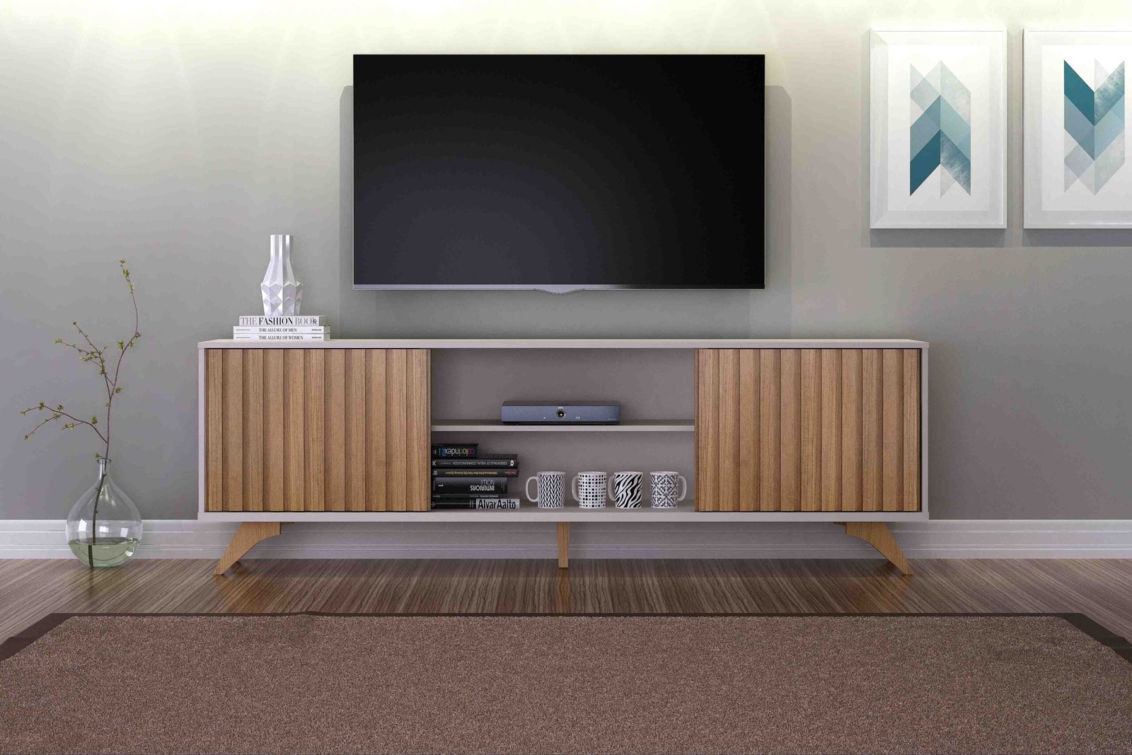- Capacidade: Ideal para TVs de até 65 polegadas, oferecendo amplo espaço para eletrônicos e itens decorativos.
