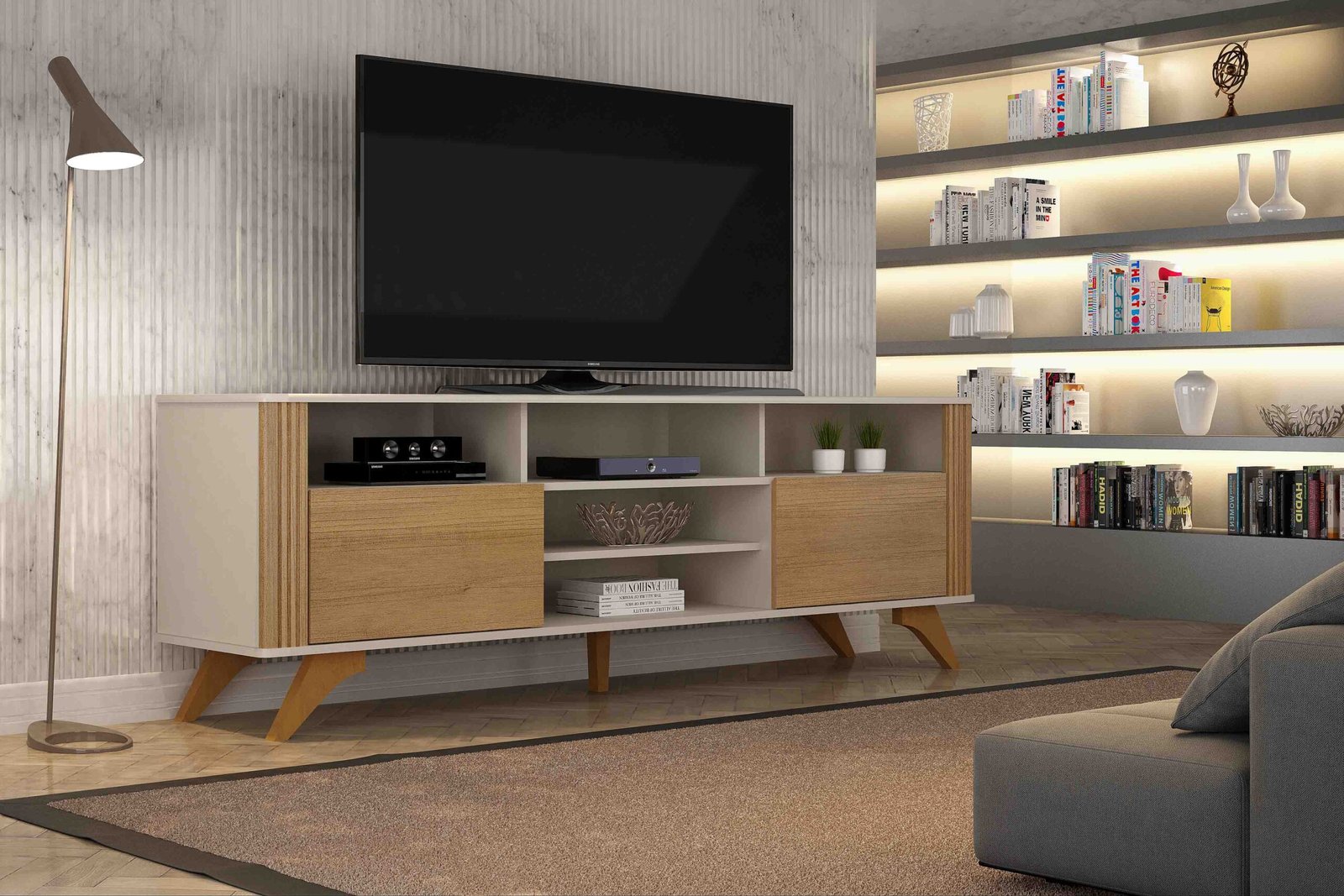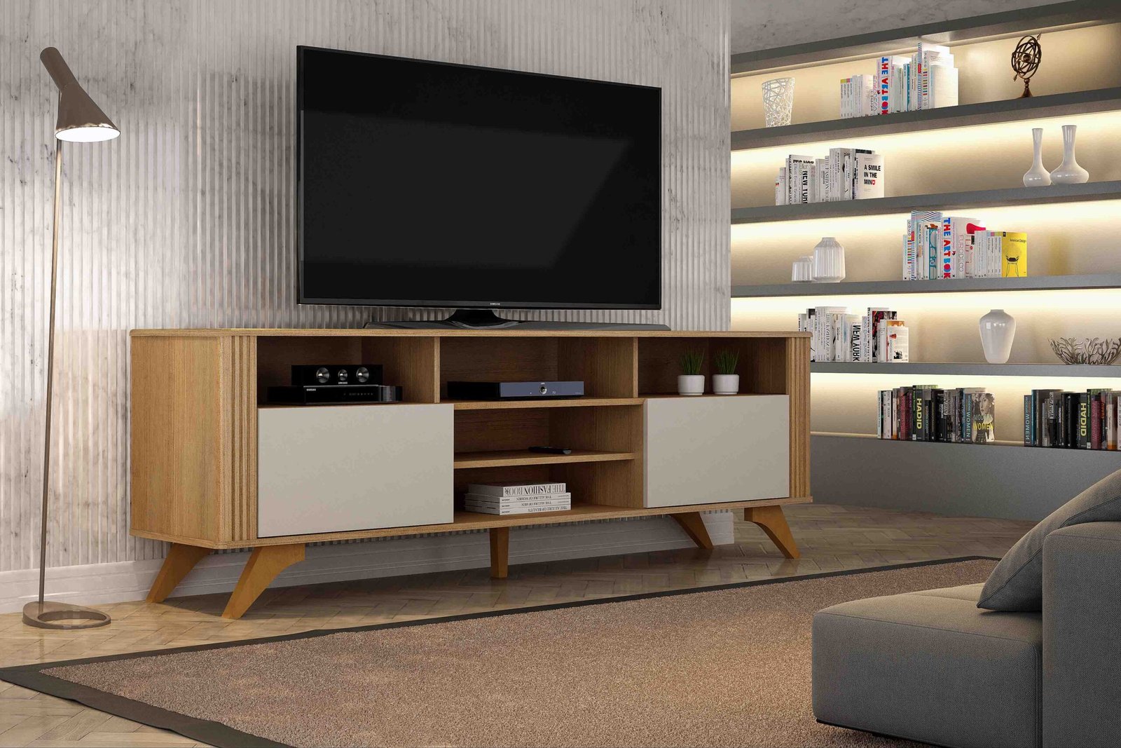 Quer dar aquele toque especial na sua sala? Nosso Rack Mariana é a escolha perfeita! Com nichos decorativos que deixam o ambiente mais organizado e elegante, ele é recomendado para TVs de até 65 polegadas, garantindo uma experiência completa de entretenimento. O tampo com borda arredondada traz um acabamento clean e sofisticado, ideal para quem valoriza um design moderno e funcional. Além disso, os pés robustos em madeira maciça oferecem estabilidade e um charme irresistível. Vem garantir o seu e transformar sua sala no espaço mais estiloso da casa! Posso usar como rack para quarto? Claro, apenas usar a criatividade e usará em vários ambientes. É um rack para sala pequena? Sim, ele se adapta perfeitamente a salas pequenas e também é uma ótima opção para decorar salas maiores.