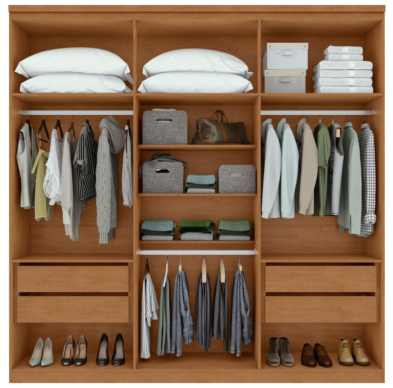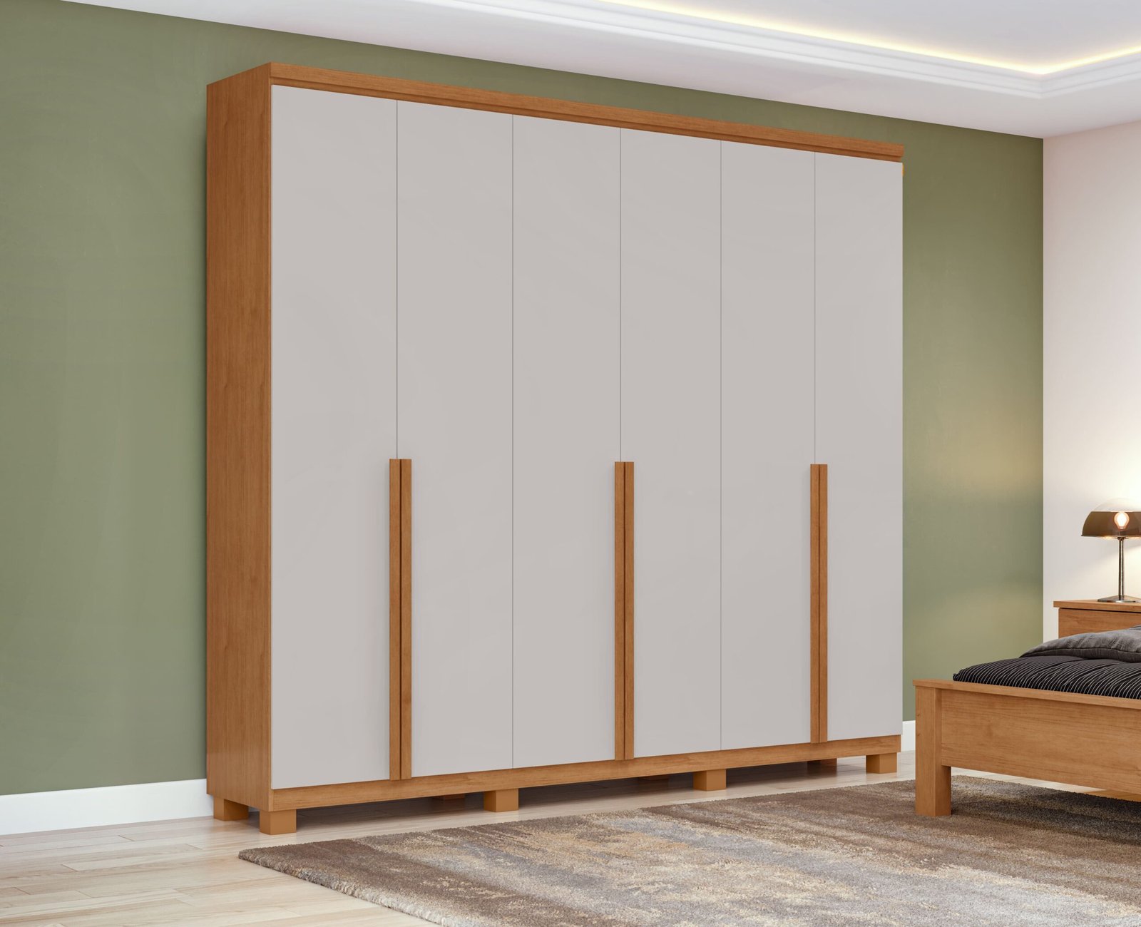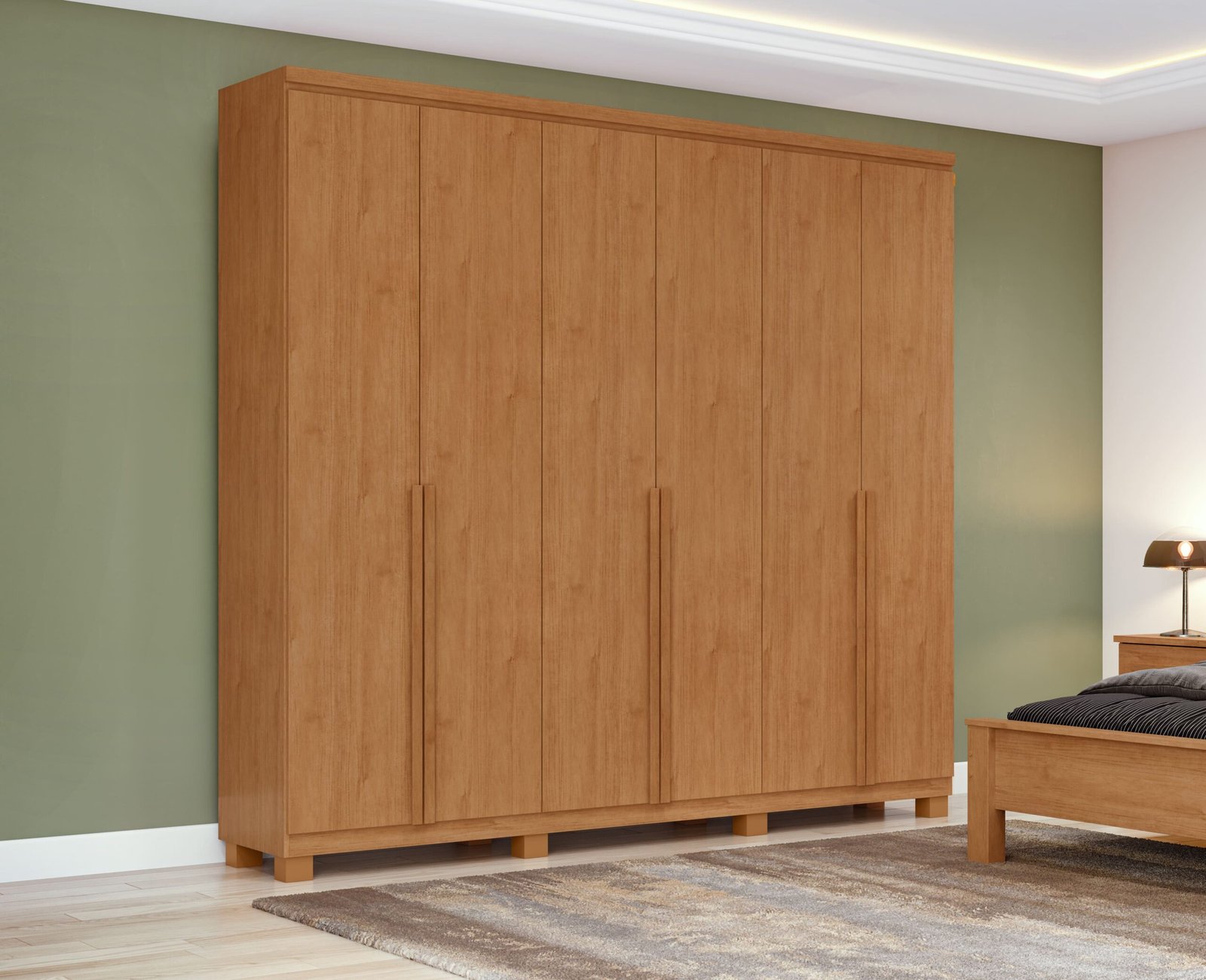 Apresentamos o Guarda Roupa Alonzo com 6 Portas e 4 Gavetas e Pés da Lopas dando muita elegância ao ambiente. Com sua aparência alongada, ele deixa o dormitório com muito mais beleza e personalidade. Sua divisão interna permite acomodar itens de modo bem definido, com espaço para roupas, sapatos, acessórios, cosméticos e o que mais for pertinente à sua rotina.