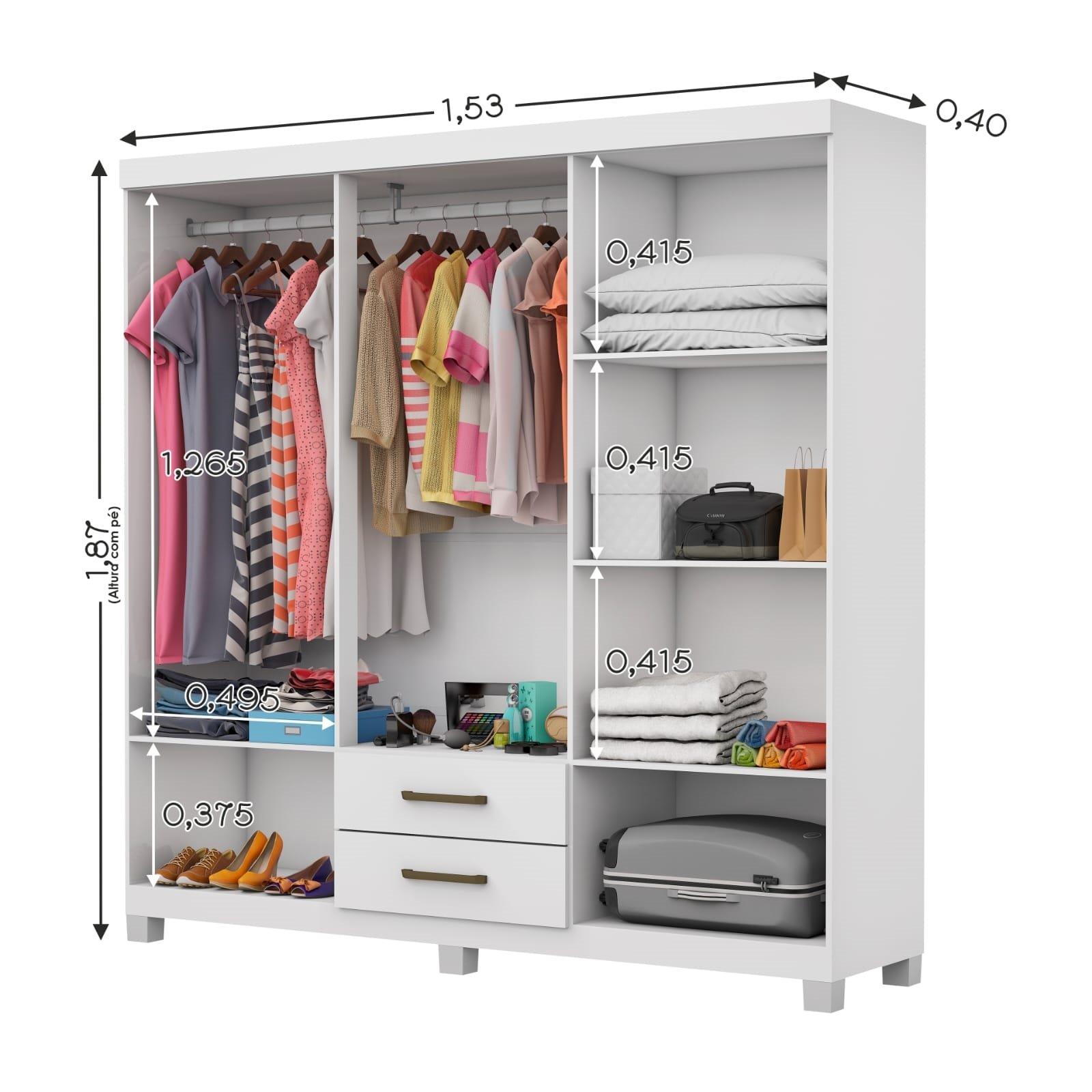 O roupeiro Aries 6 Portas 2 Gavetas Carioca é um modelo relativamente compacto, que atende a necessidade do cliente, ideal para ambientes não muito grandes. Excelente produto para melhor dispor de suas roupas e pertences.
