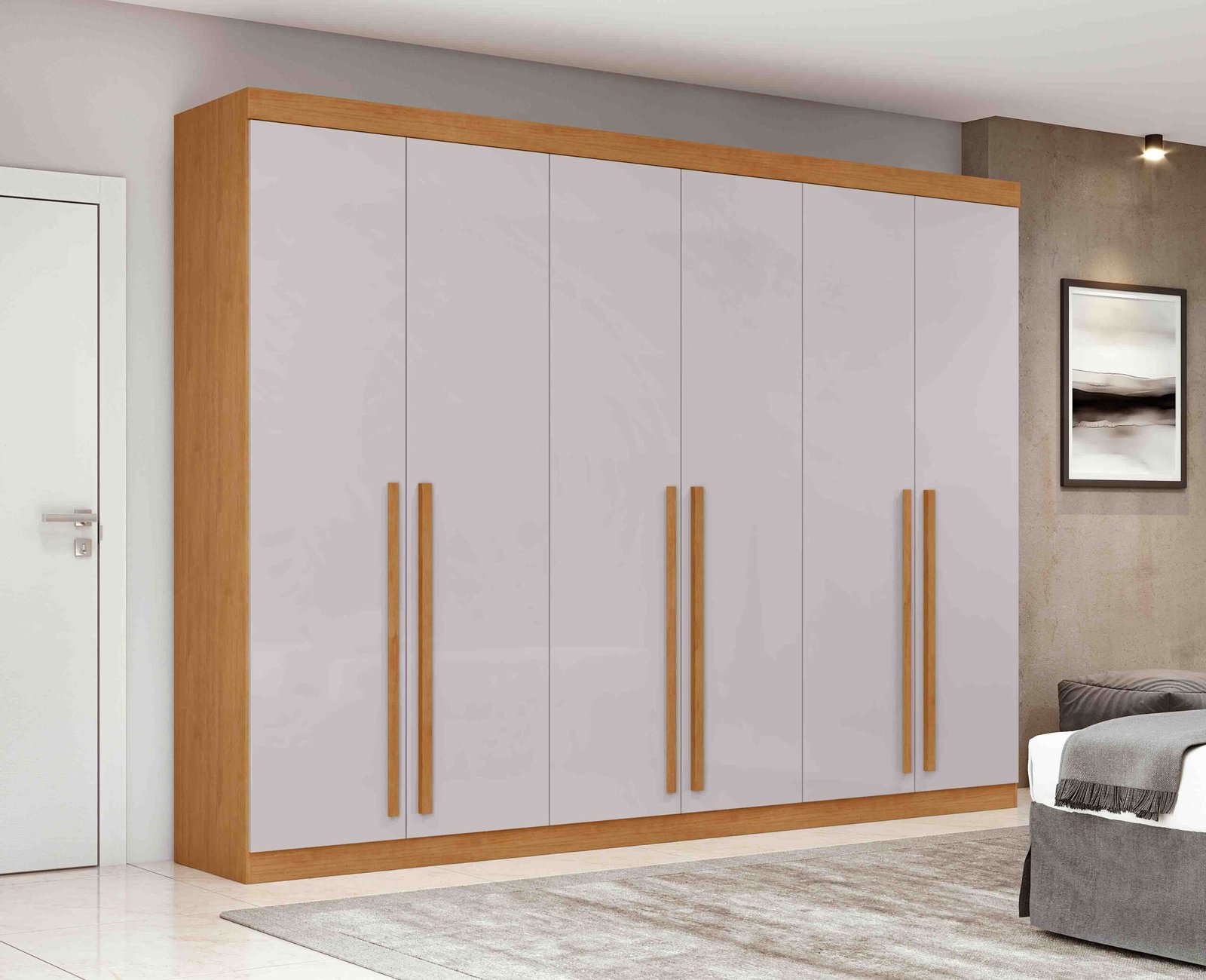 Se você busca espaço e organização, o nosso guarda roupa 6 portas é a escolha ideal! Com um espaço interno amplo, ele acomoda facilmente suas roupas, acessórios, sapatos e muito mais, mantendo tudo organizado e ao seu alcance. Seus cabideiros e compartimentos bem distribuídos tornam a organização simples e prática. Com design moderno e acabamento de qualidade, ele combina estilo e funcionalidade, trazendo sofisticação para o seu quarto. Transforme sua decoração para quarto e aproveite cada detalhe indispensável.