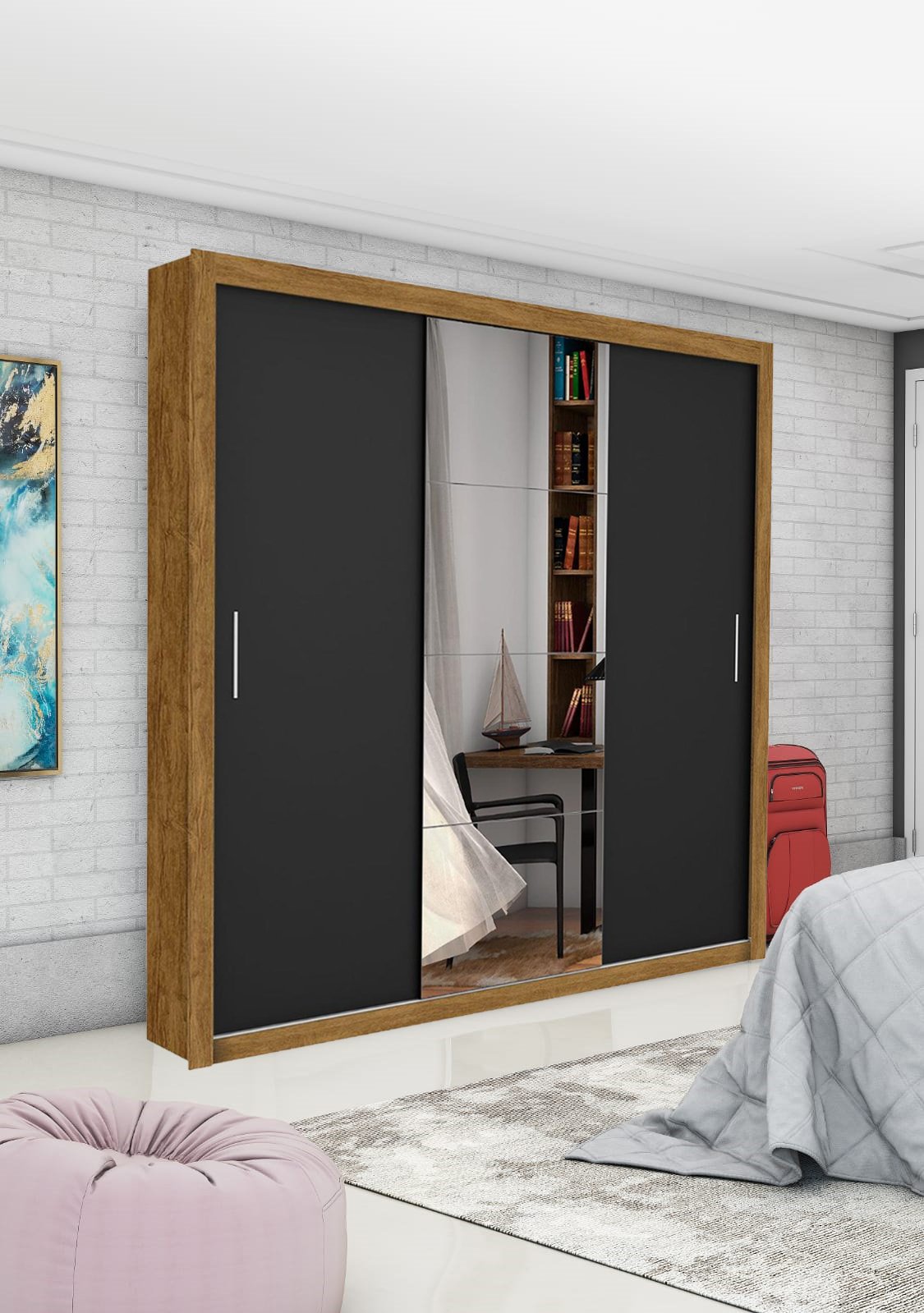 O Guarda Roupa Clara Plus com 3 Portas de Correr, 4 Gavetas e Espelho da Carioca Móveis traz conforto, sofisticação e praticidade.