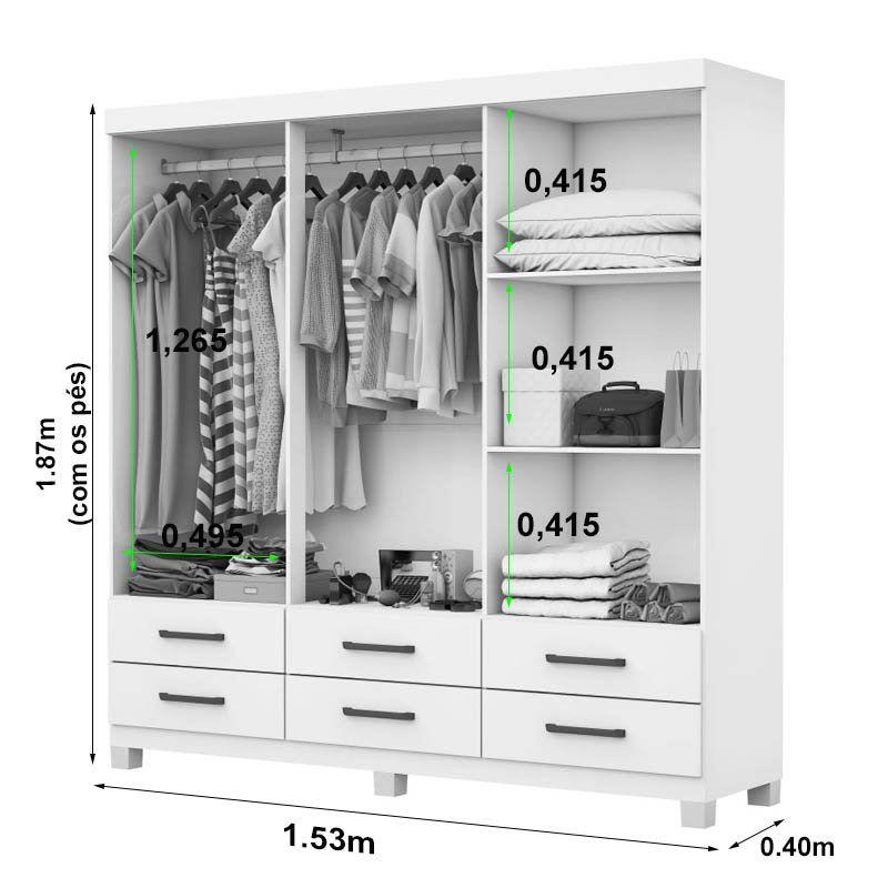 O roupeiro Dallas é feito com materiais resistentes e duráveis, combina a praticidade do dia a dia com um design moderno e elegante que vai deixar qualquer quarto com um toque de sofisticação. As portas deslizantes garantem fácil acesso ao conteúdo do guarda-roupa, enquanto as gavetas espaçosas oferecem organização impecável para todas as suas roupas.