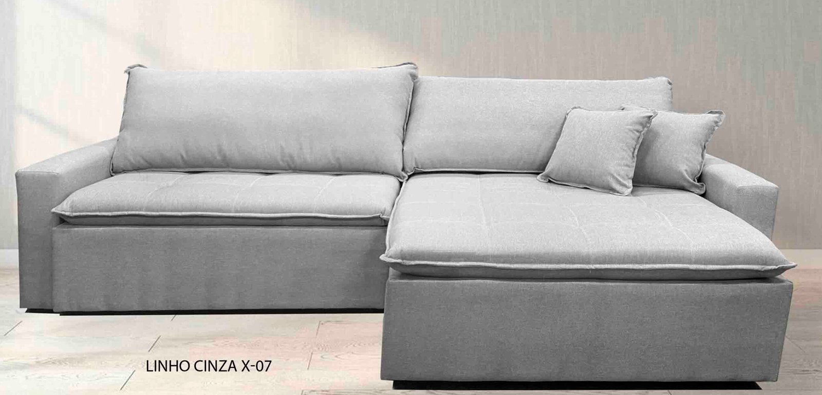 | Cor | Linho Cinza X-07, Linho Grafite X-18, Linho Palha X-08, Veludo Grafite E-43 |